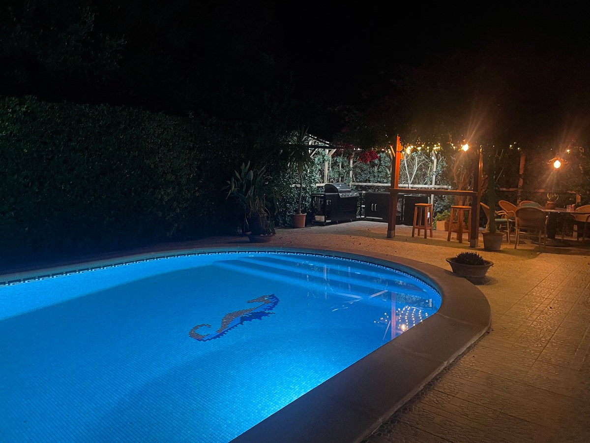 Pool and bar by night